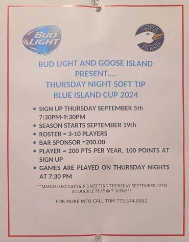 Join the exciting dart league at the Double Play Saloon in Blue Island, IL. Compete with fellow dart enthusiasts every Thursday night for the coveted Blue Island Cup.